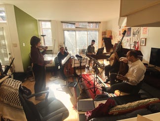 In July 2025, I acted as composer-mentor for Toronto’s Tapestry Opera Librettist-Composer Workshop—better known as the Lib Lab—led by Artistic Director Michael Mori. Four composers and four writers took turns pairing off with one another. The writer had 24 hours to create a libretto for their composer, who then had 24 hours to compose a 5-minute operatic scene. The four rounds were spread over ten days; each round was launched with a different prompt.
